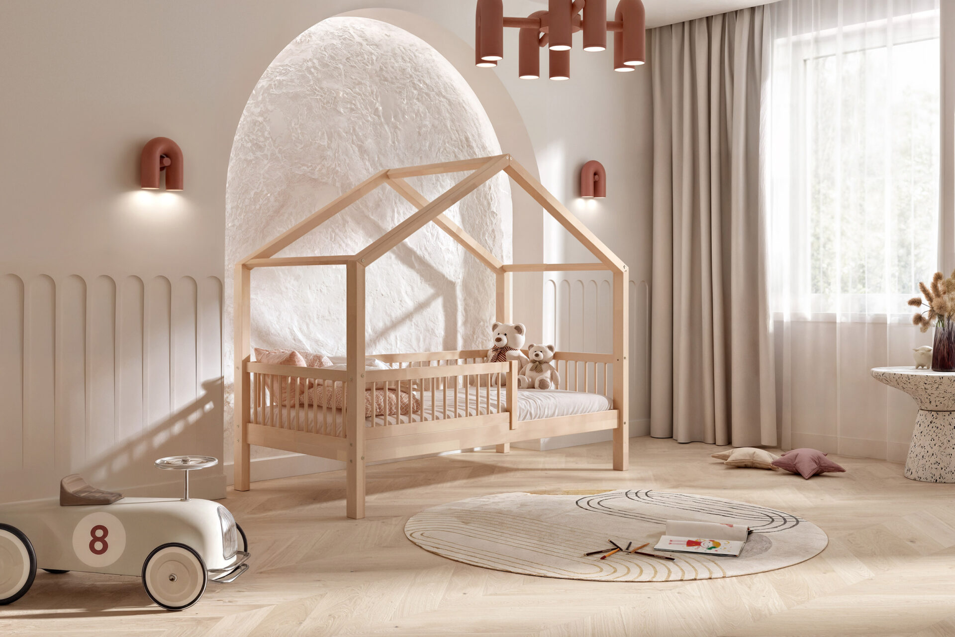 Bei LittleLoft finden Sie eine große Auswahl an Betten – von klassischen, bodennahen Modellen bis hin zu außergewöhnlichen Designs, inspiriert von der skandinavischen Ästhetik, die an charmante Häuschen oder Tipis erinnern. Unsere Produkte werden aus natürlichen, kindgerechten Materialien hergestellt – für einen sicheren und gesunden Schlaf.