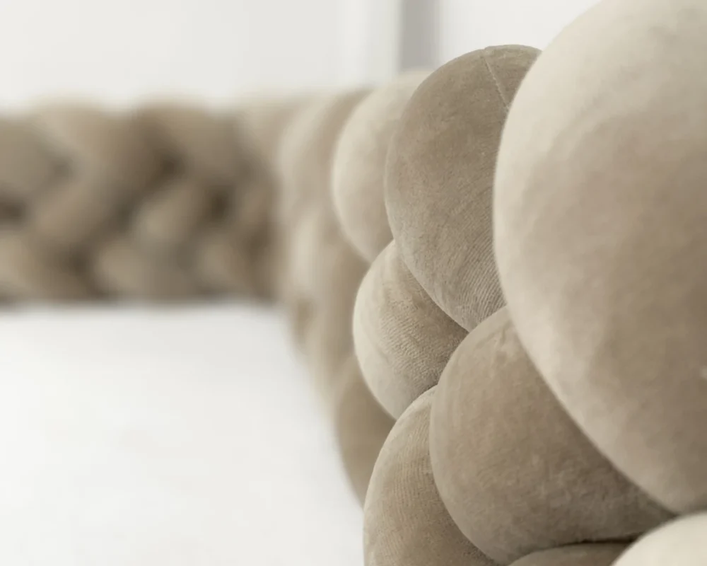 Geflochtener Bettschutz, 4 Stränge, Samt/Mandel